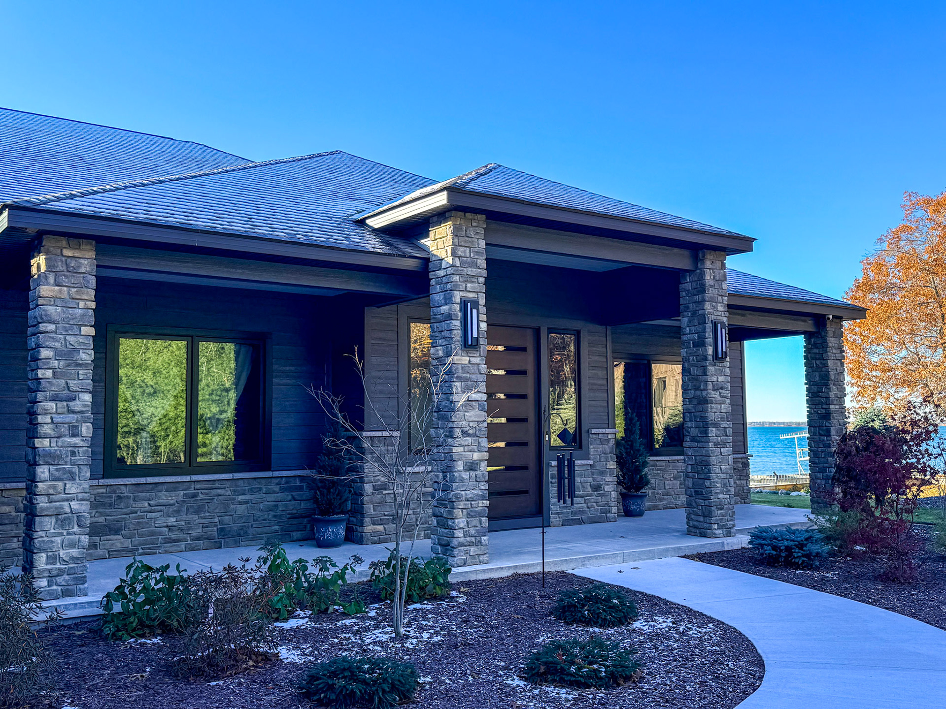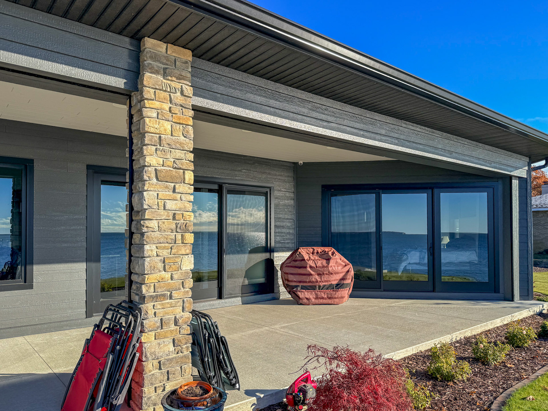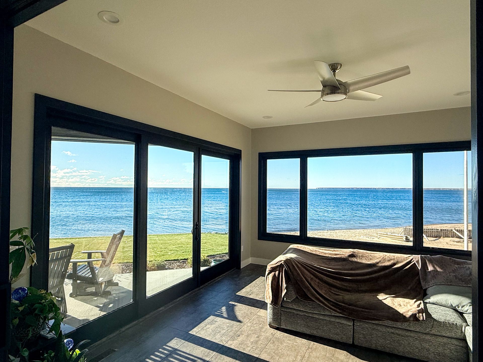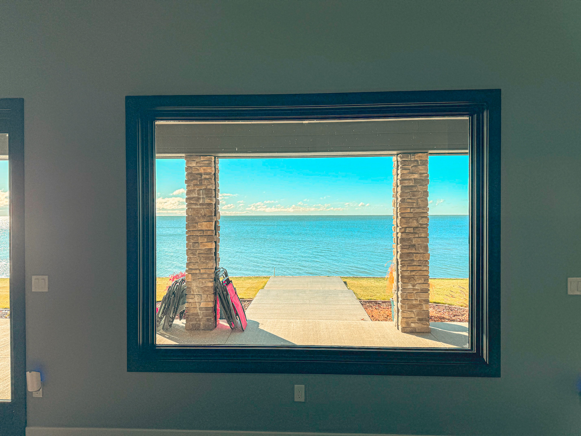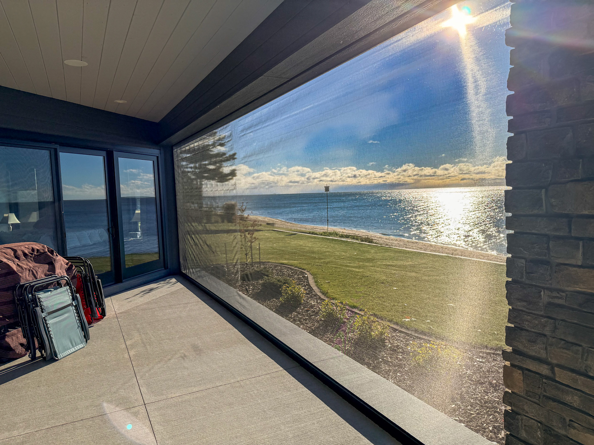 Enjoy these views of Lake Huron with a retractable screen on your back patio. Stunning views all across this home.